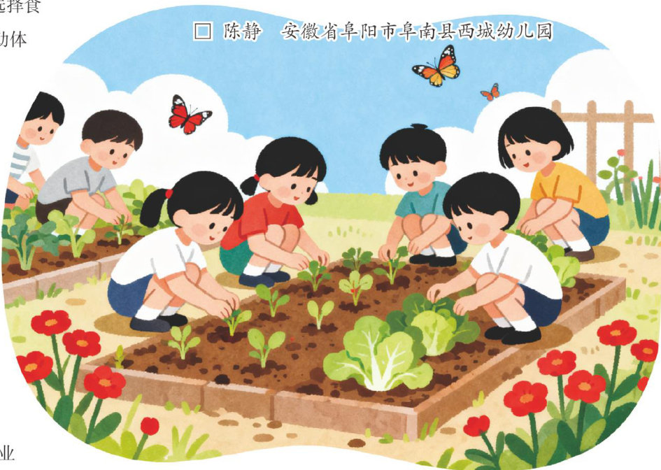 “二十四节气”作为耕学活动的时间标尺,为农作物种植提供了精准指引。幼儿参与劳作时,通过观察气候与农作物的对应关系,既能建立清晰的季节意识,领悟自然节律,又能在劳作中树立生态意识与劳动观念,促进幼儿的全面发展。 挖掘资源路径:从“一亩三分地”到“教研共同体” 创新场地布局,打造耕学乐园。种植环境的创设是开展“四季耕学”活动的基础,对幼儿的学习体验有着重要影响。针对幼儿园普遍存在的种植场地不足
