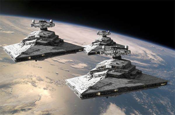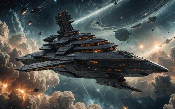 歼星舰 《星球大战》系列影片使银河帝国的超级战舰(如歼星舰)首次出现在人们眼前,它作为太空战斗的核心平台,可搭载数百架战机,在轨道上释放战斗机群进行大规模进攻。这种太空母舰的视觉范本似乎为航天母舰的发展提供了一条路径,但人类对于航天母舰的探索与想象远不止于此。在人类军事科技发展史上,航天母舰的构想标志着战争维度从大气层内拓展至宇宙空间的革命性跨越。作为人类探索太空的一个重要平台,航天母舰形态的演