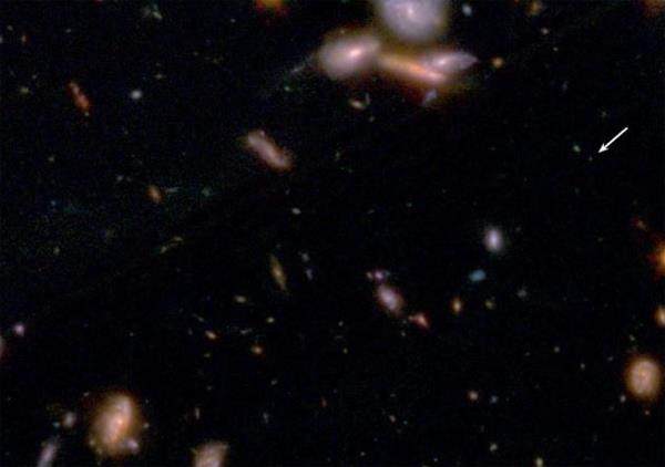 研究人员确定了3颗潜在的“暗恒星”。图中白色箭头指向其中的一颗 最近,天文学家注意到了一种奇怪的恒星,它们的创造者被认为是构成宇宙中大多数物质的暗物质,科学家称它们为“暗恒星”。2007年,由宇宙学家凯瑟琳·弗里兹领导的美国得克萨斯大学的一个研究团队疑似发现了这种恒星。在詹姆斯·韦伯太空望远镜拍摄的图像中,该团队找到了3个疑似“暗恒星”的天体。不过,宇宙中是否真的存在这种恒星,人们迄今仍然无法确