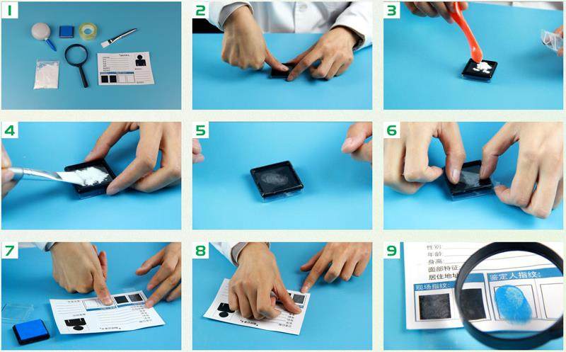 餐桌上放着一根没吃完的雪糕,还有部分雪糕残存在雪糕棒上。 大潘:“小美,你居然偷吃我的雪糕!” 小美:“不是我啊!是旺旺偷吃的。”小美指着桌边的小狗说道。 大潘:“怎么可能,我不信。” 小美:“说我偷吃的,你有证据吗?” 大潘:“证据?嘿嘿,你的指纹还在上面哦!” 小美:“这也能看出指纹?” 大潘:“待我将你的指纹提取出来,看你还怎么狡辩!” 实验材料 放大镜、胶带、刷子、印泥、
