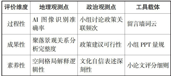 新课标重视跨学科主题学习,在实际运行中出现学科目标分散、情境与责任分割、技术运用浅尝的局面。本文从教、学、评一体出发,将地理解析能力融合到政治理解素养中,运用真实情境以及人工智能辅助教学工具,探究基于“认知进阶-价值养成-社会担当”的“认知进阶-价值养成-社会担当”学习过程一体化培养路径。 一、教学评一致性:双学科目标与评价的精准咬合 1.目标双螺旋设计 打破学科界限,构建地理与政治理论“双