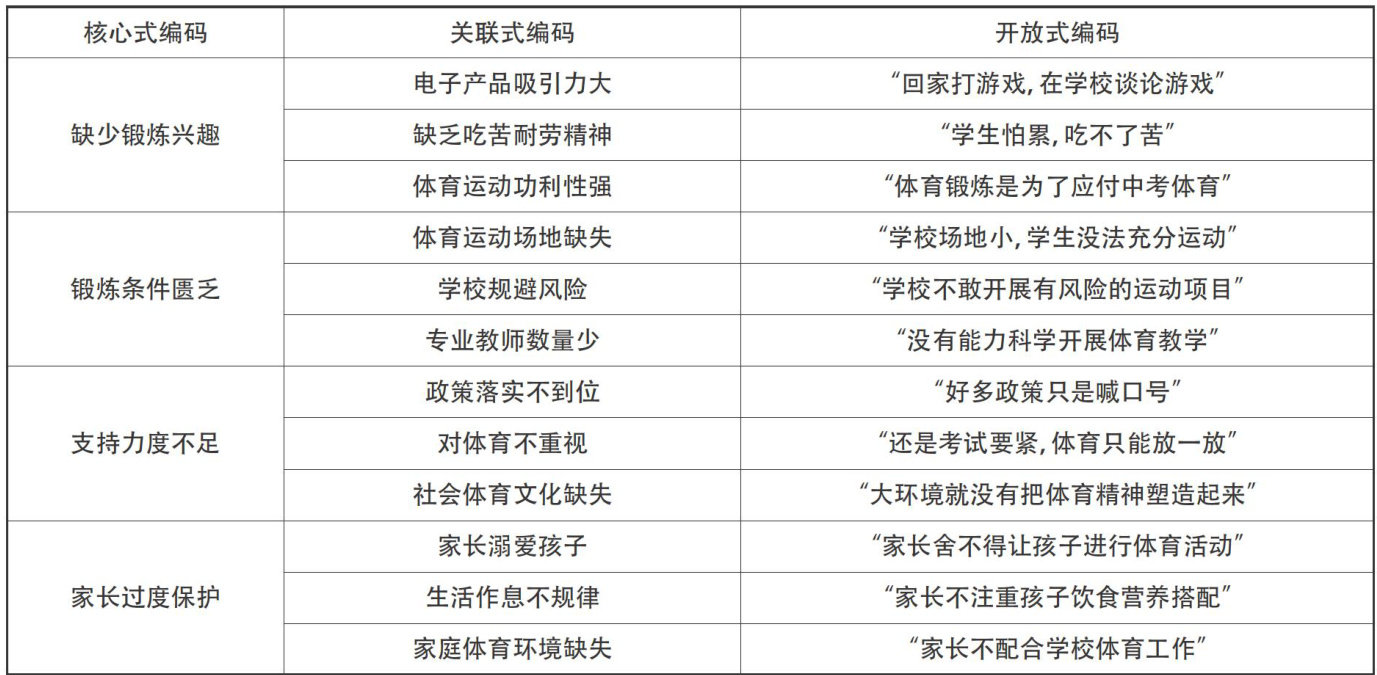 摘要:高水平的体质健康是青少年学习与成长的基础,也是中华民族伟大复兴的可靠保障。通过分析影响青少年体质健康水平的因素,能更有针对性地提出切实可行的对策。基于对N市40名学校管理者与一线教师的深度访谈,从学生锻炼兴趣、体育锻炼条件、各界对学生参与体育运动的支持力度及家长保护的情况四个方面着手,分析青少年体质健康水平的影响因素,并从提供政策保障、打造体育文化、完善考核机制、加强家庭监督四个方面提出建议,助力提升青少年体质健康水平。