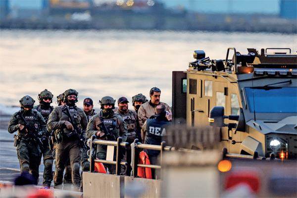 2026年1月5日,在美国纽约,委内瑞拉总统马杜罗在执法人员陪同下前往联邦法院。图/C 2026年1月4日,委内瑞拉民众举行集会抗议美国强行控制总统马杜罗。图/祝觉中国 2026年1月3日,在古巴首都哈瓦那,民众参加集会活动谴责美国军事入侵委内瑞拉。图/新华 2026年1月3日,在委内瑞拉首都加拉加斯,民众在一家药店前排队等候。图/新华 2025年12月16日,美国海军"硫璜岛"号军舰停靠