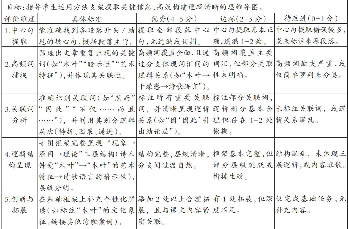 摘要:本文针对核心素养导向下高中语文课堂教学评价面临的即时性、精准性及个性化反馈等挑战,以必修上第三单元《说“木叶”》教学实践为例,探索生成式人工智能赋能课堂教学评价的创新应用。通过智能诊断学情动态优化教学目标,嵌入评价支架强化过程性反馈,人机协同构建素养画像,并优化指令设计和教师主导的智慧应用,实现对学生素养发展的多模态分析,为“以评促学”提供技术支撑,为素养导向下的语文课堂教学评价向过程化、精准化转型提供可资参考的实践案例。