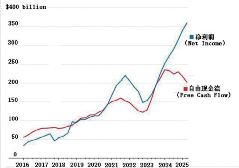 Facebook的母公司Meta于7月30日发布了2025财年第二季度财报,该报表显示,Meta的第二季度净利润同比增长了 36% ,但自由现金流(FreeCashFlow)却下降了 22% 。美国科技七巨头这两周公布的报表,不同程度具有类似特点。投资者从中开始发现人工智能热潮中令人不安的另一面:在芯片、数据中心和其他人工智能基础设施上的所有支出,正在耗尽美国企业的现金储备。历史经验告诉人们,这是