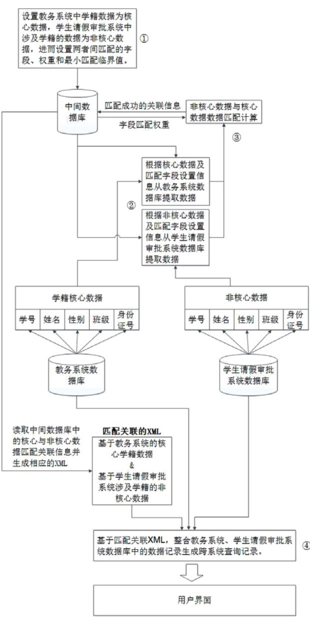 摘要:针对信息孤岛导致的数据互通难和不一致问题,本文提出一种跨系统数据匹配的方法。在现有孤岛式信息系统基础上,对现有各系统数据库中存在的同类数据,以其中某一系统中数据为准并形成核心数据,其他系统中对应的同类数据则作为非核心数据,进而采取多字段加权计算匹配值并取最优值的方法,实现非核心数据匹配关联核心数据,形成匹配关联信息保存在一个中间数据库中;查找数据时,读取中间数据库中的匹配关联信息并生成相应的XML或JSON文件,以此整合现有相应数据库中数据并提供准确的数据服务。经仿真验证,该方法能准确识别出非核心数据中的对应数据并予以匹配,在两系统数据不一致的情况下实现跨系统数据准确识别和匹配。