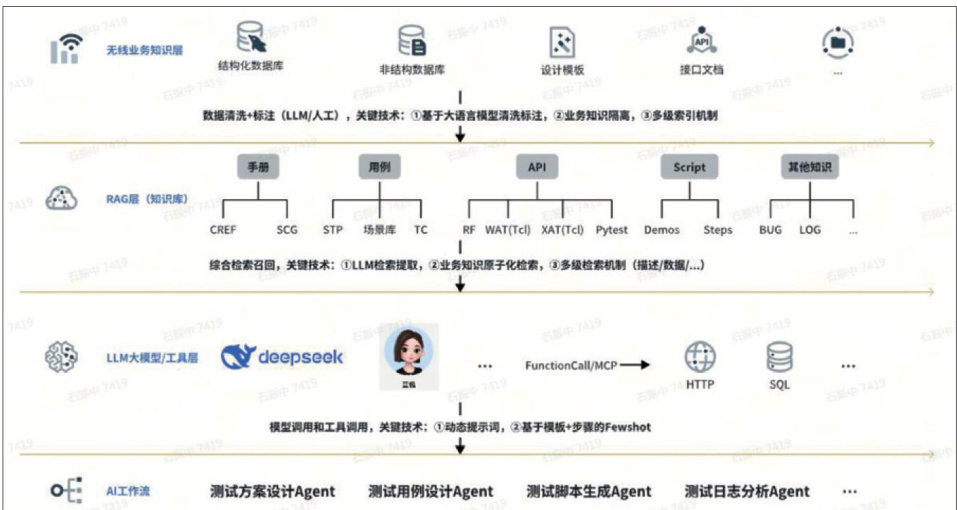 摘要:随着WLAN技术快速迭代,传统测试模式在需求分析、用例设计等环节暴露出人工依赖性高、效率低等痛点。大语言模型(large language model,LLM)为测试革新提供了路径,本文提出全智能化测试方案,构建基础层、平台层、应用层技术架构,明确历史经验和最佳实践提示词工程化、知识分层向量化、数据和关键交付件FewShot化等关键技术路径及分阶段实施策略。实践显示,该方案在用例生成、脚本生成等场景取得突破,能显著提升测试效率与质量,未来将助力下一代WLAN测试方法的突破。