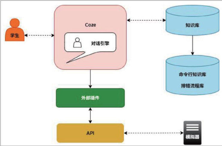 摘要:针对路由交换实训中存在的命令行操作门槛高、排错效率低、教师指导覆盖不足等问题,本文设计并实践了一套基于Coze平台的辅助教学方案。该方案依托Coze的零代码开发特性,构建具备命令辅助查询和故障引导排查两大核心功能的虚拟助教系统,深度融合“真实设备 + 虚拟辅助”的实训模式。甘肃交通职业技术学院网络技术专业二年级的试点结果表明,该教学方案能够使学生配置错误率降低35% ,平均排错时间缩短 40% ,教师重复性问题解答负担减少 60‰