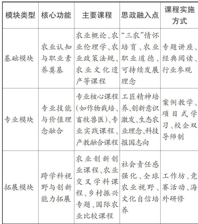 摘要:乡村振兴战略不断推进,部分涉农高校已探索出多种"思政+专业"协同育人典型模式,但仍存在课程体系有待重构、实践平台亟待拓展、评价机制有待完善等问题。对此,涉农高校可通过构建“课程思政 .+ 专业教育”模块化课程体系、强化校企双元育人和拓展实践教学场景、完善“大思政”评价机制、打造专兼结合的协同育人师资队伍等路径,构建系统化可持续发展的协同育人新生态。
