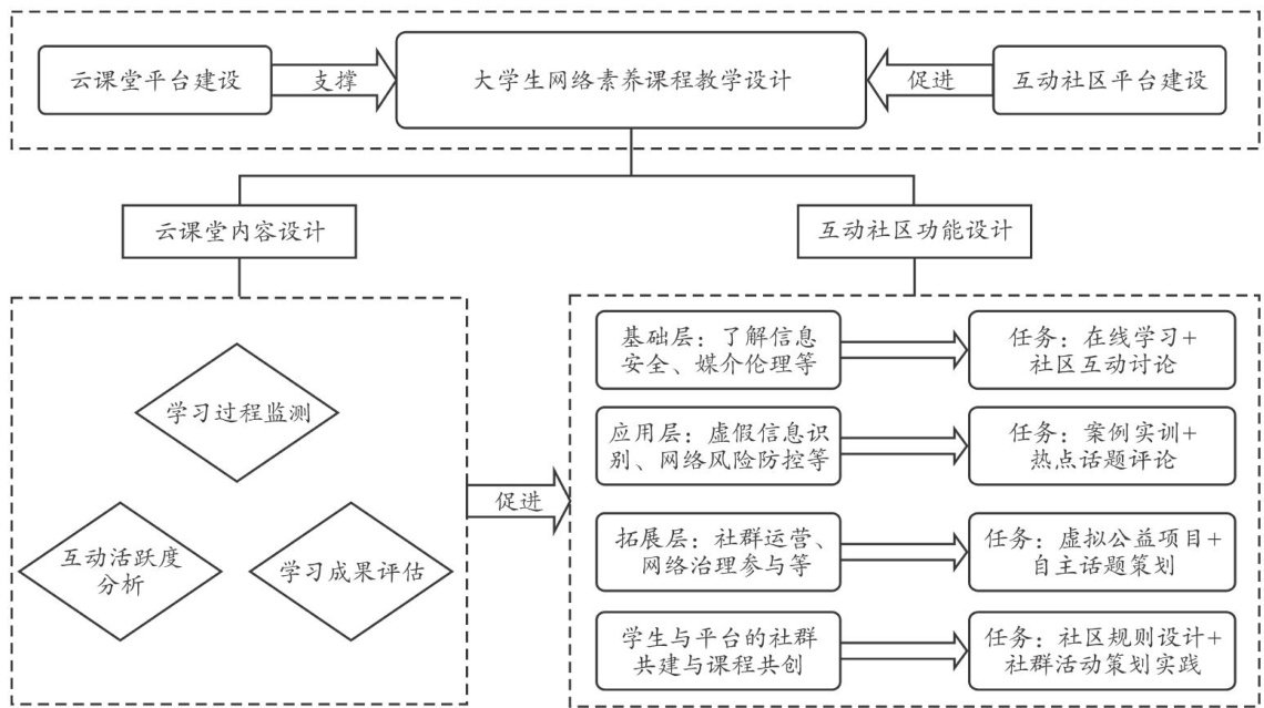 摘要:以“云课堂 + 互动社区”为基础构建的大学生网络素养课程,是顺应数字化教育转型与青年网络行为特征而提出的一种全新课程形态。当前,此类课程的教学存在课程内容和教学方法与网络动态环境脱节、缺乏协同结构、学习评价机制僵化等问题,亟须在教学内容和教学形式上实现创新突破。为此,可通过引入沉浸式虚拟互动场景、开发智能学习路径推荐系统、跨校共建网络素养协作社区与搭建全过程数据追踪与素养提升可视化平台等路径优化大学生网络素养课程教学,探索数字化环境下理论与实践深度融合的网络素养教育新形式。