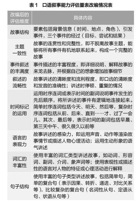 【摘 要】大班幼儿口语叙事反映幼儿的语言表达能力和认知发展水平。利用“多彩光谱语言评估量表”比较大班幼儿在看图叙事和自由叙事活动中的表现,研究得出:幼儿看图叙事时,叙事的结构性强、丰满度高;自由叙事时,语言的流畅性与表现力优。依据研究发现提出教育建议:开展图画书阅读活动,强化幼儿叙述的结构性和丰满度;开展故事讲述活动,提升幼儿口语叙事的流畅性和语言的表现力。 【关键词】看图叙事 自由叙事 口语叙