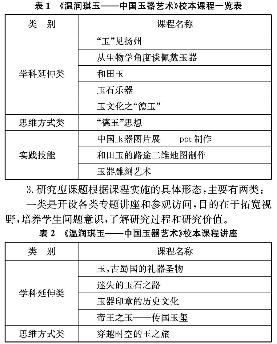 摘要:在新课改的背景下,校本课程的建设与开发也必然会面临新的机遇与挑战,学校需要不断地研究探索校本课程的实施方案,建构促进学生和谐健康发展的教育课程。校本课程的产生与实施已经是整个学校整体工作的一部分。本文阐述了开发中学玉器艺术校本课程的背景,开发内容与目标,实施与成效,为同类学校开发校本课程提供借鉴。 关键词:校本课程;玉器;开发与实施 中图分类号:G634 文献标识码:A文章编号:1992