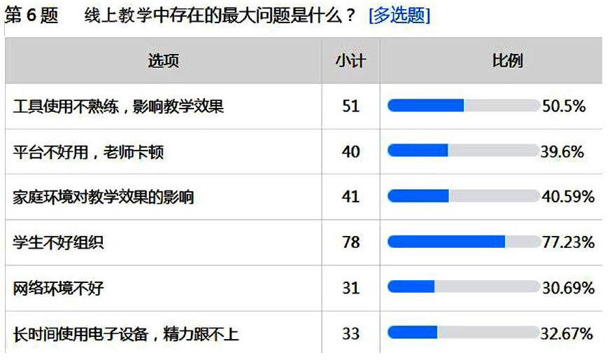 摘要 :经过特殊时期线上教学的实践活动,笔者通过问卷调查法和访谈法分析了学生和教师在线学习和授课中遇到的相关问题。其后在线上授课、课后辅导两方面进行探索研究,并针对面对摄像头授课的教师提出了“为”与“不为”的几点建议,以便对未来必将长期存在的线上教学模式提供一些有效的借鉴和参考。 关键词 :中学线上教学;在线授课;课后反馈;有效性 中图分类号:G434 文献标识码:A 文章编号:1992