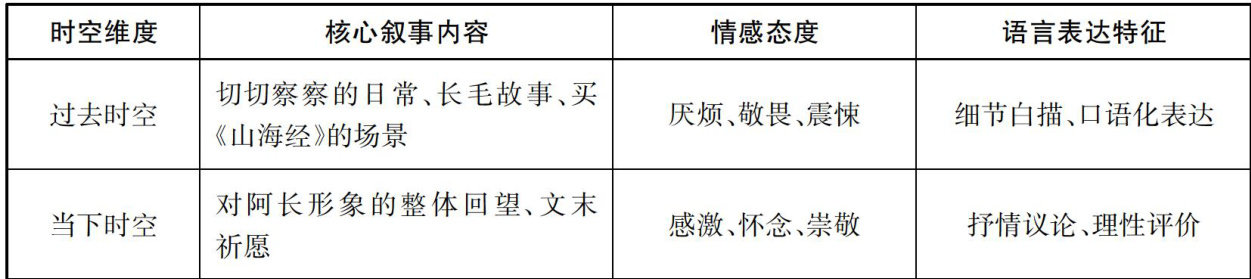 摘要:情感重塑带来素材取舍、具体细节承载象征意蕴、双重时空构成视角张力、叙事层进推动认知升华是回忆性散文的文本特质,相应地提出“简化、强化、变化、深化"的“四化"教学主张:聚焦核心,剥离冗余,落实“简化”;透视细节,放大价值,驱动“强化”;洞察流转,体察演进,追踪“变化”;提炼升华,抵达内核,促成“深化”。