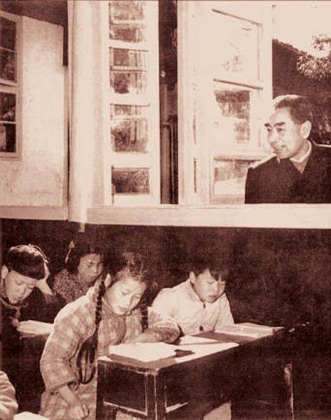 1957年4月,周恩来在杭州梅家坞小学参观 著名作曲家周大风作词谱曲于1958年4月、后流行于全国甚至走向世界的《采茶舞曲》,与周恩来总理有着密切的关系,也可以说是在他的亲切关怀下创作的。1957年3月21日,捷克斯洛伐克政府总理威廉·西罗基在国务院秘书长习仲勋陪同下,乘专机从广州到杭州访问。在陪同贵宾游览位于西湖边的虎跑泉时,周恩来萌生了希望艺术家创作一首茶歌的念头。在招待国宾的宴会上,浙江省