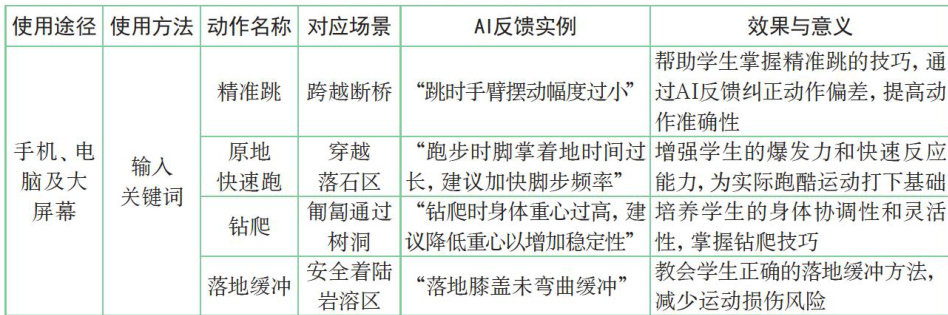 摘要:聚焦人工智能(AI)技术在体育课堂教学中的创新应用,推动体育教育向科学化、个性化、全人培养方向转型。通过分析AI在动作矫正、动态评估、协同育人等多维场景中的具体操作与实施策略,结合笔者所在学校的实践案例,系统阐述AI技术支持下的精准教学闭环、数据驱动评估及智能化活动组织等路径。