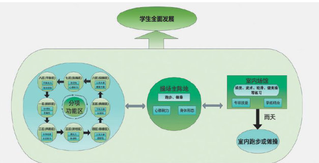 摘要:大课间是学校体育活动的重要组成部分,也是落实“教会、勤练、常赛”的有效途径。为丰富活动内容、提升学生的体能水平,借鉴“城市功能区”的理念,把学校室外运动场地重构为跳跃区、奔跑区、跨栏区、悬垂区、跳箱区、投掷区、跳绳区和平衡区8个功能区,通过区域联动与赛练结合,采用“5星评价法”和“校园吉尼斯挑战赛”激励机制,激发学生运动兴趣,促进学生积极锻炼。经过实践检验和学生体测数据验证,表明该途径成效显著,对学生核心素养培育具有积极影响,有利于促进学校体育的“精准化”施策。